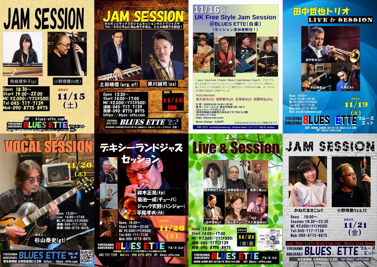 大元は、このBluesEtteのホームページで「スケジュール」、「フライヤ」等が最新です。
